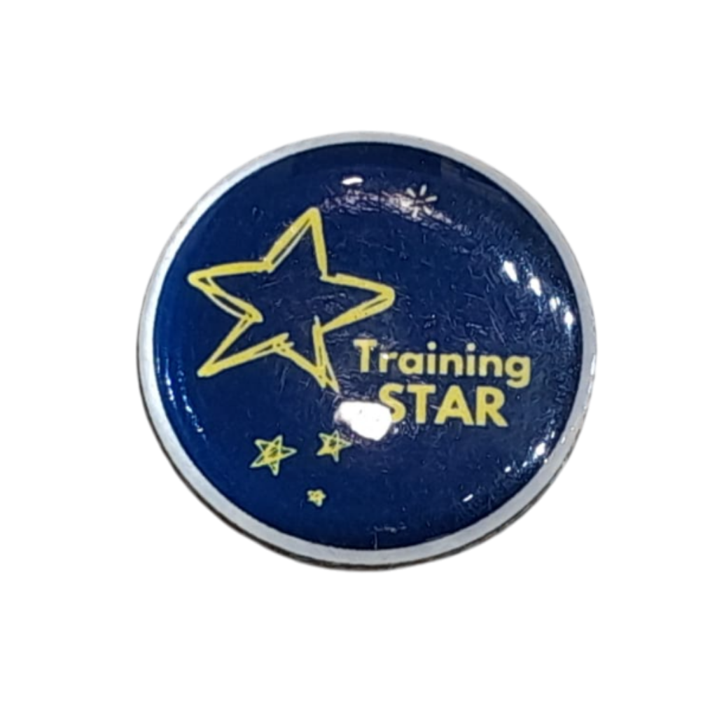 Name for the badge: “Training Star Badge” or “Training Star Recognition Pin.”