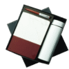 A pen — A matching black pen with silver accents, placed neatly above the notebook.