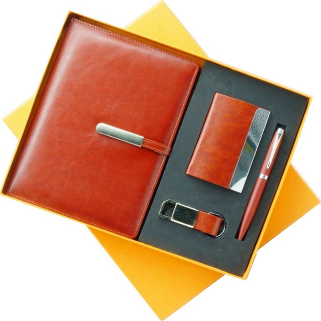 • Leather Diary / Planner: Ideal for jotting down notes, meetings, and ideas, featuring a smooth leather cover with a sleek metallic clasp for a professional look.