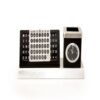 The entire setup rests on a rectangular metal base, giving it a clean, organized, and professional appearance — perfect for a contemporary office desk.