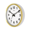 Numerals: Bold, black Arabic numerals are printed in a modern, geometric font at each hour mark (1–12).