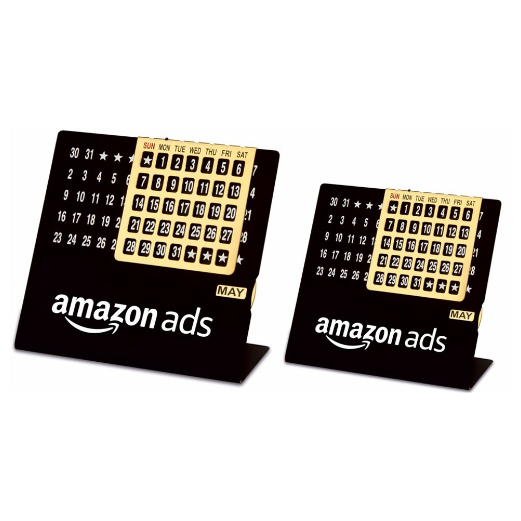 Each calendar features the Amazon Ads logo prominently on the lower front area. The logo includes the familiar Amazon “smile” arrow beneath the word “amazon,” followed by the word “ads.”