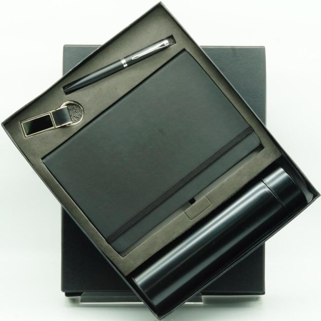 Notebook – A premium-looking black notebook with an elastic closure band, ideal for professional note-taking.