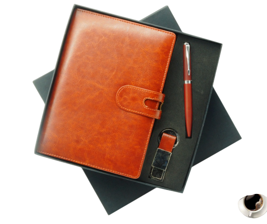 Elegant Leather Notebook: Crafted with a rich brown leather cover, ideal for journaling, meeting notes, or planning.