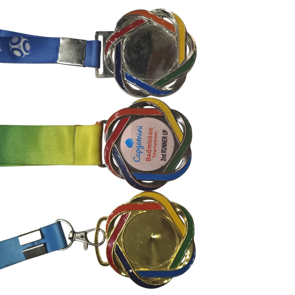 Overall, they appear to be sports medals from a corporate badminton competition.
